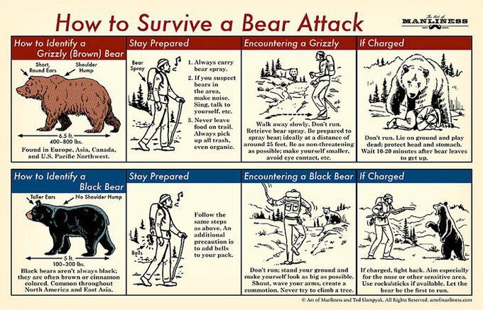 グリズリーも一発で気絶させるスカンクを帯同しとけ。ガスマスク必須。